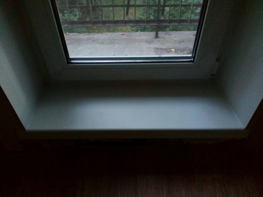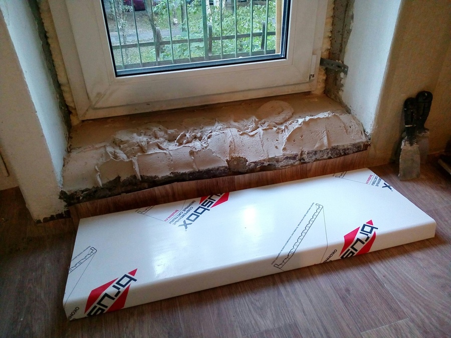 7. В конце работ груз снимаем, снимаем пленку и герметизируем стыки ступеньки с откосами и с оконной рамой с помощью жидкого пластика или герметика. Желательно на новую ступеньку не наступать сутки, пока внутри штукатурка не засохнет окончательно.